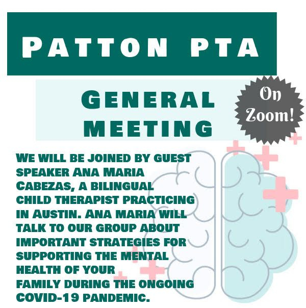 Our first General PTA Meeting of the year is on Thursday, September 24 at 6 pm. The Zoom meeting will allow you to virtually meet our officers and hear how we are gearing up for the coming year. To attend the meeting, you must register using this link: https://bit.ly/2RgikWN A Zoom invitation will be emailed to you the week of the meeting with details.Mark your calendars and register now so you can be sure to participate!