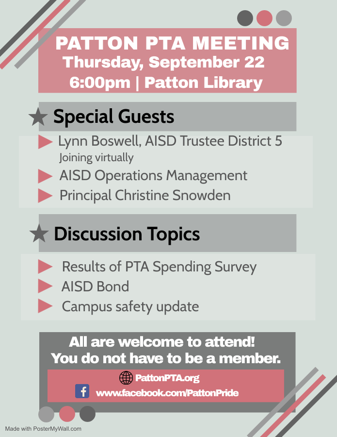 Please join us for our first PTA meeting of the new school year! All are welcome to attend – you do not have to be a member. Share this: Click to share on X (Opens in new window) X Click to share on Facebook (Opens in new window) Facebook