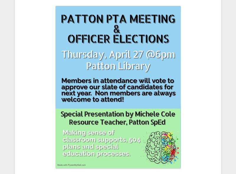Read our latest newsletter! https://www.smore.com/tpf4j-patton-pta-updates