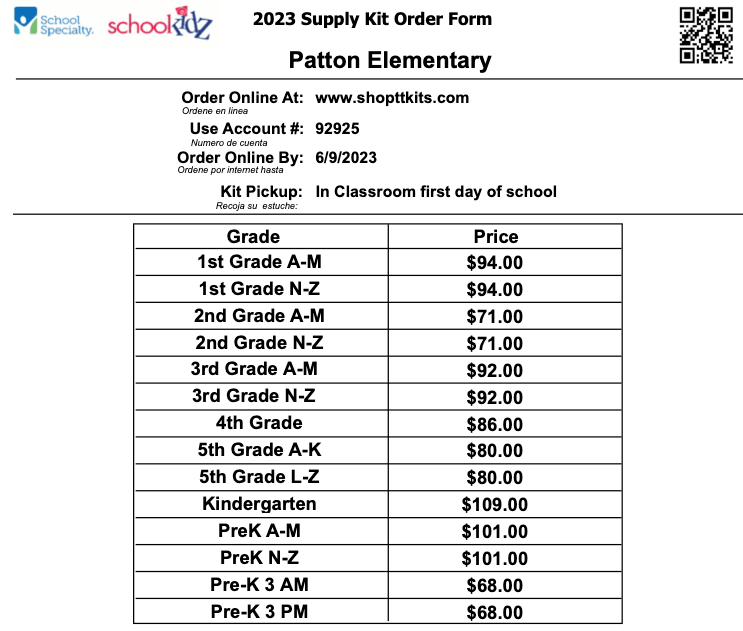 Would you rather spend a summer day driving from store to store to purchase school supplies or get everything you need in one easy box? Great news! We are offering a supply kit program at our school this year. Kits include the exact colors, quantities, and brands your teachers have approved for class. Get your back-to-school shopping out of the way early and enjoy an extra summer day!