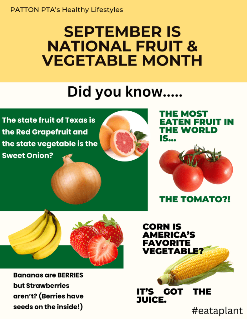 - September is National Fruit and Vegetable Month (see some fun facts below!!)