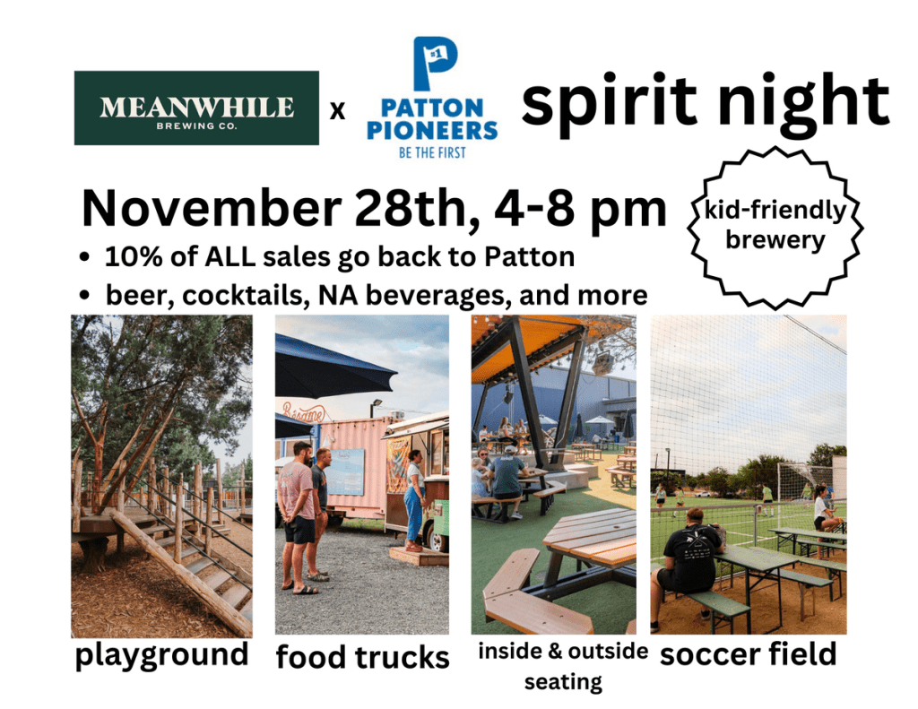 - Nov 28th, 4-8pm: Spirit Night @ Meanwhile Brewing