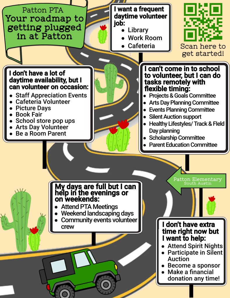 Regardless of whether you have lots of time to volunteer or none at all, there are many ways you can support Patton PTA.