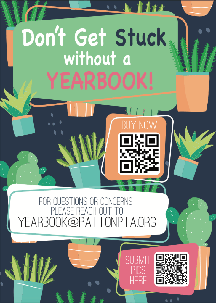 Avoid the end-of-year scramble: get your yearbook now before the price goes up in the spring! Visit HERE to order now! (You can also search for Patton Elementary on jostens.com).